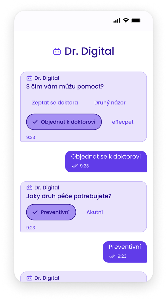 Můžete naplno využívat službu Dr. Digital. Ať jde o konzultace s lékařem, nebo objednání termínu u specialisty.